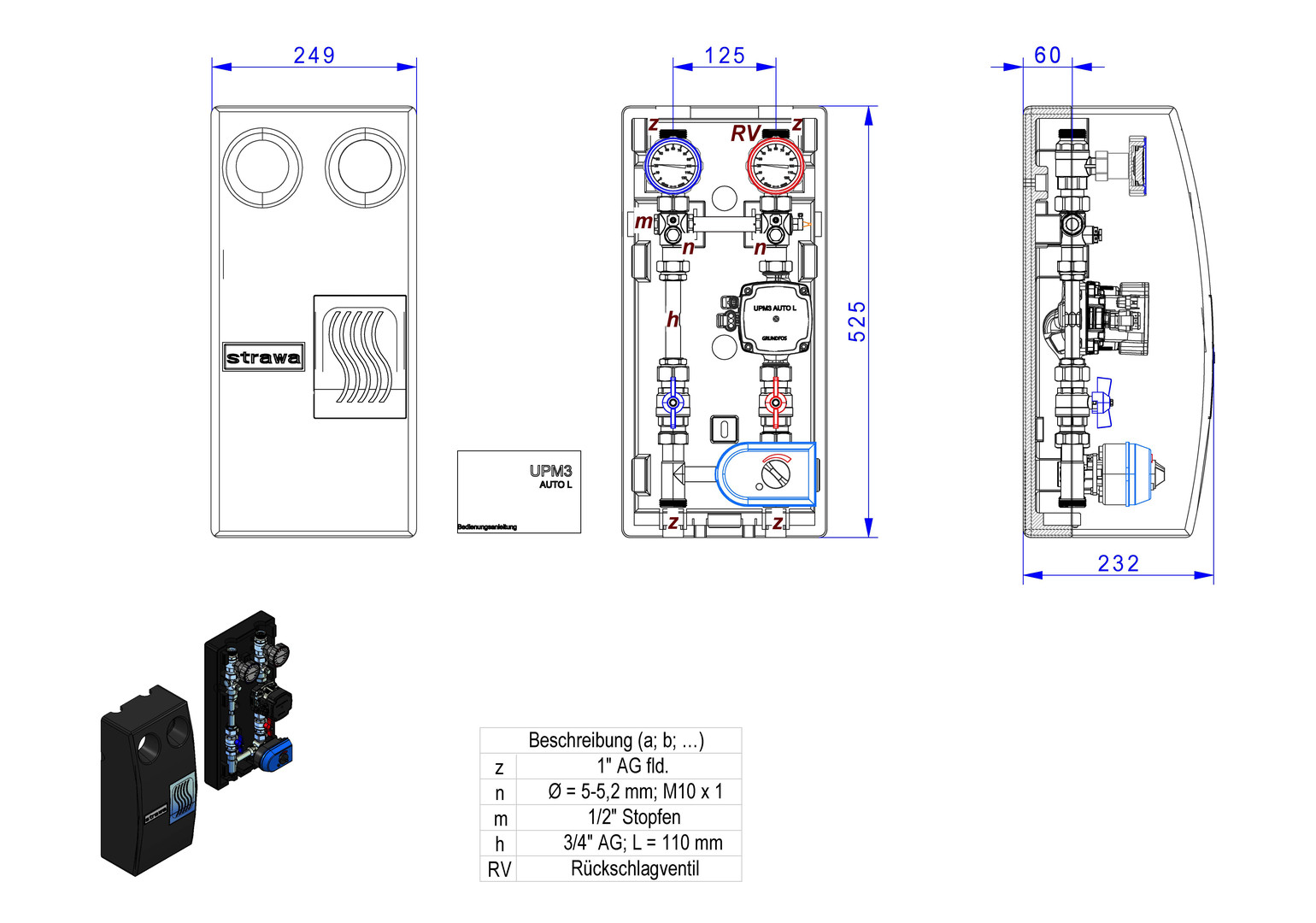 Strawa Aufbaugruppe strawi 125-25 MK MK1-WMZ-SM, geregelt, mit Pumpe und Stellmotor