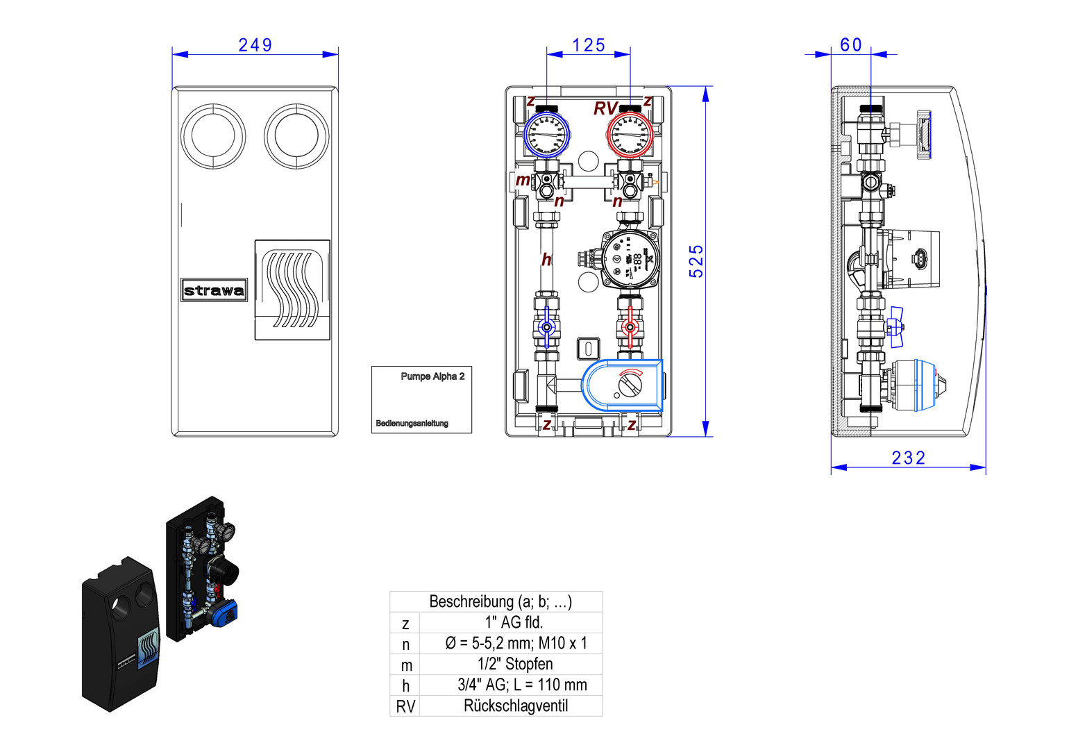 Strawa Aufbaugruppe strawi 125-25 MK MK2-WMZ-SM, geregelt, mit Pumpe und Stellmotor