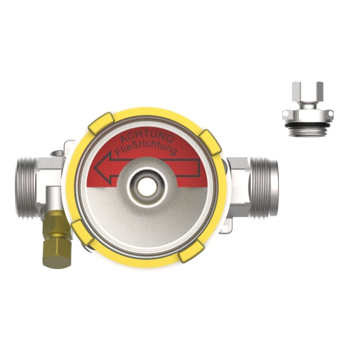 M12 x 1 AG, Einrohranschlussteil mit integrierter Rücklauf-Temperaturmessstelle und Blinddeckel zum Durchspülen, sowie Fühlereinbaustück für den Vorlauf, geeignet für Wärmezähler Allmess Integral MK bis Qn 1,0