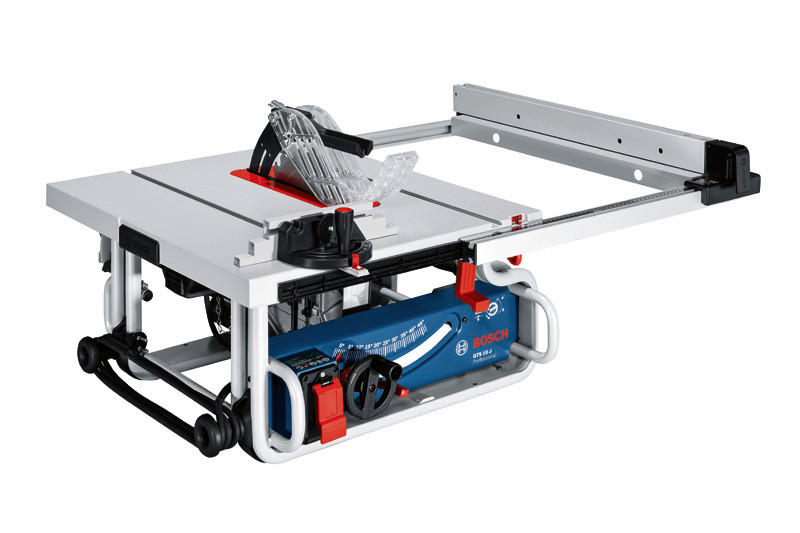 Tischsäge GTS 10 J, Die kabelgebundene Tischkreissäge GTS 10 J Professional ist sehr kompakt und bietet mobile Höchstleistung an verschiedenen Einsatzorten. Durch ihre kompakte Bauweise und die vielen Griffflächen lässt sie sich komfortabel transportieren. Ihr kraftvoller 1.800-Watt-Motor liefert eine hohe Sägeleistung für einen schnellen Arbeitsfortschritt. Darüber hinaus ermöglicht ein werkzeugloser Spaltkeil eine schnelle Verstellung für verdeckte Schnitte. Dieses Elektrowerkzeug ist für das Zuschneiden von Plattenmaterialien, für Längsschnitte und für verdeckte Schnitte in Holz sowie in Holzverbundwerkstoffen, Plattenmaterialien und Laminat bestimmt. Es ist kompatibel mit Arbeitstischen für Tischkreissägen und dem Bosch Click & Clean-Staubabsaugsystem. Ferner verfügt die GTS 10 J Professional über Funktionen wie doppelte Isolierung, Überlastschutz, Softstart und Spindelarretierung. Winkelanschlag (2 610 015 507). Absaugadapter (2 610 015 509). Parallelanschlag (2 610 016 853). Schiebestock (2 610 015 022). 1 x Kreissägeblatt, Optiline Wood, 254 x 2,8/1,8 x 30 mm, 24 (2 608 838 412)