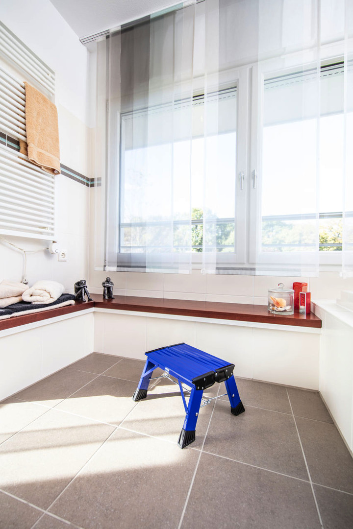Leichter Aluminium-Tritt in 5 knalligen Farben. In Haushalt und