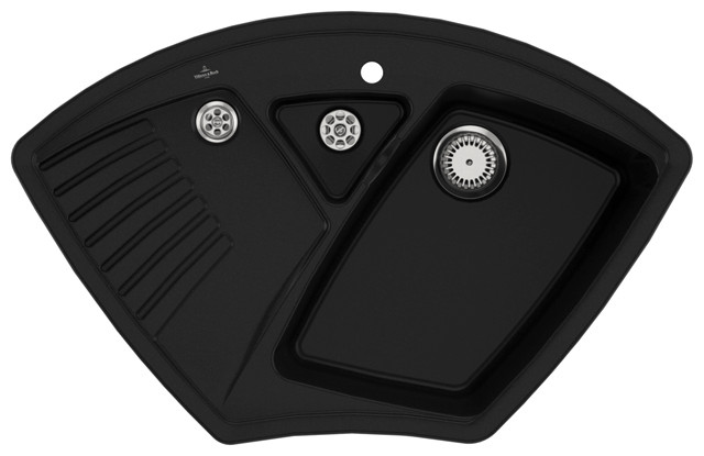 V&B Eckspüle Arena Eck mit Ablaufgarnitur, Handbetätigung, chromite CeramicPlus