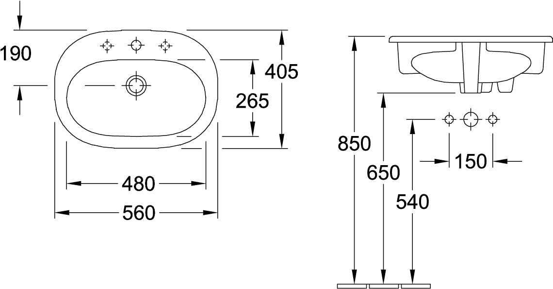 für 3-Loch-Armatur geeignet, mittleres Hahnloch durchgestochen, mit Ausschnittschablone