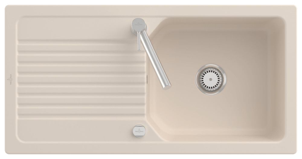 V&B Flächenbündige Spüle Linara 60 Flat mit Ablaufgarnitur, Excenterbetätigung, ivory CeramicPlus