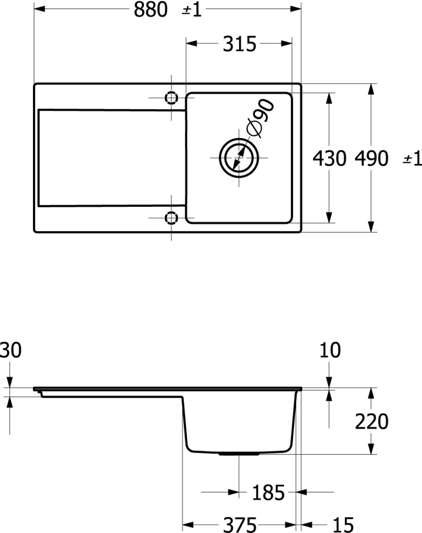 V&B Flächenbündige Spüle Siluet 50 Flat mit Ablaufgarnitur, Handbetätigung, chromite