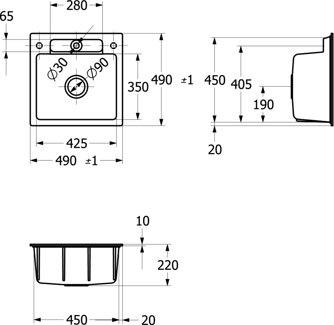 für den flächenbündigen Einbau in Natur-/Keramik-/Glas- und Quarzsteinarbeitsplatten, Spüle flexibel drehbar, minimale Unterschrankbreite 50 cm, Material TitanCeram