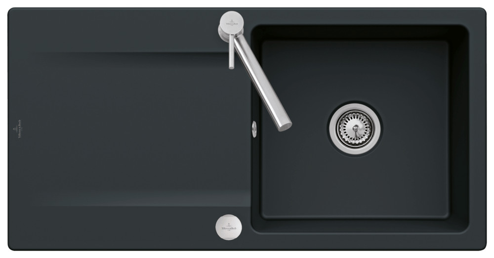 V&B Flächenbündige Spüle Siluet 60 Flat mit Ablaufgarnitur, Excenterbetätigung, pure black