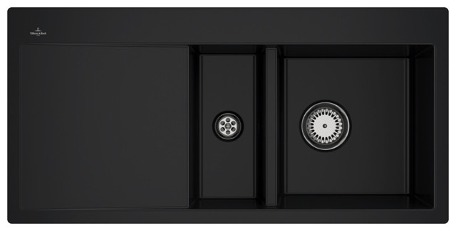 V&B Flächenbündige Spüle Subway 60 Flat rechts, mit Ablaufgarnitur, Handbetätigung, ebony