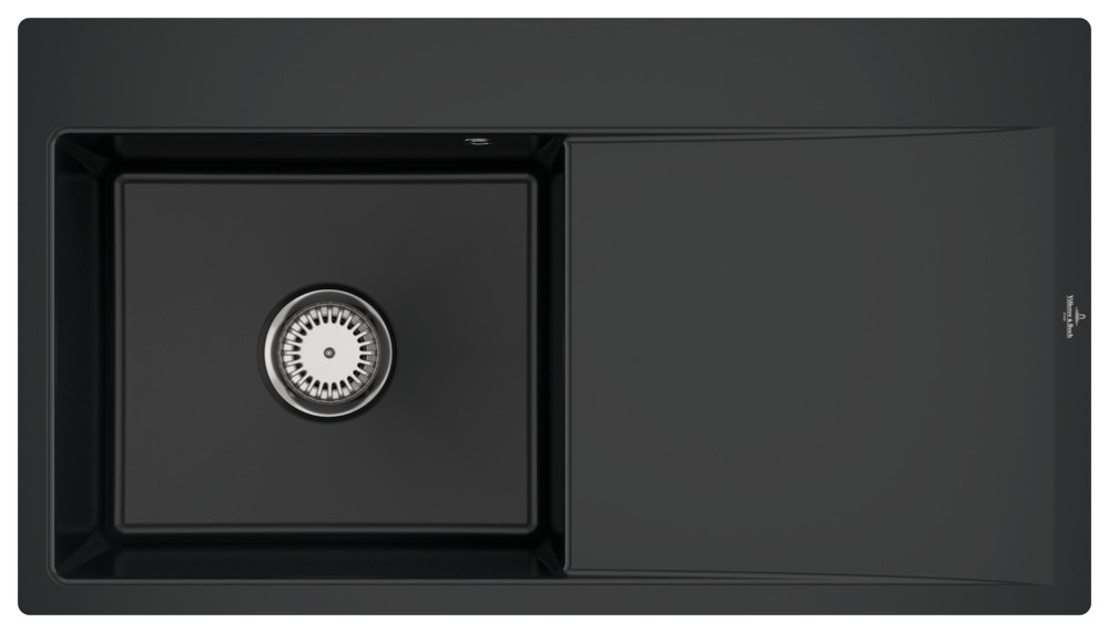 V&B Flächenbündige Spüle Subway Style 50 Flat links, mit Ablaufgarnitur, Handbetätigung, pure black