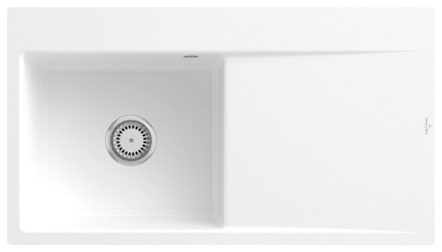 V&B Flächenbündige Spüle Subway Style 50 Flat links, mit Ablaufgarnitur, Handbetätigung, stone white CeramicPlus