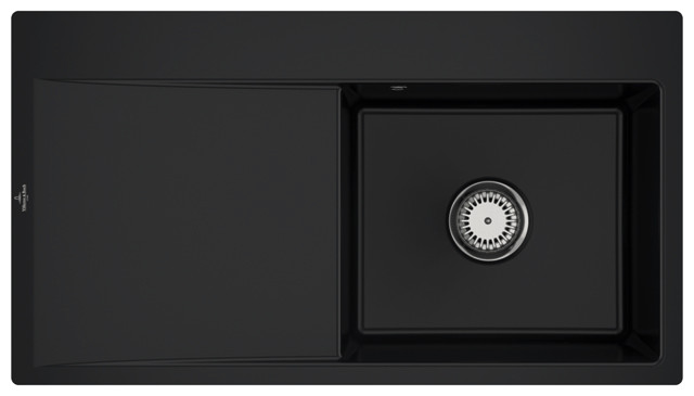 V&B Flächenbündige Spüle Subway Style 50 Flat rechts, mit Ablaufgarnitur, Handbetätigung, ebony