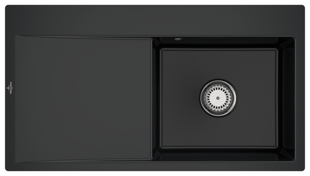 V&B Flächenbündige Spüle Subway Style 50 Flat rechts, mit Ablaufgarnitur, Handbetätigung, pure black