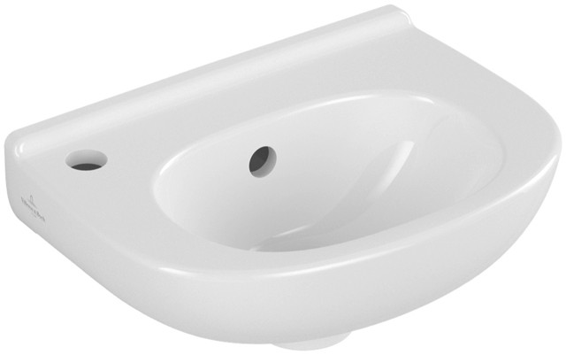V&B Handwaschbecken O.NOVO Compact 36 x 27,5 cm, Hahnloch links, mit Überlauf, weiß