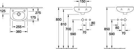 | Dimension | ohne Überlauf, Hahnloch rechts durchgestochen |