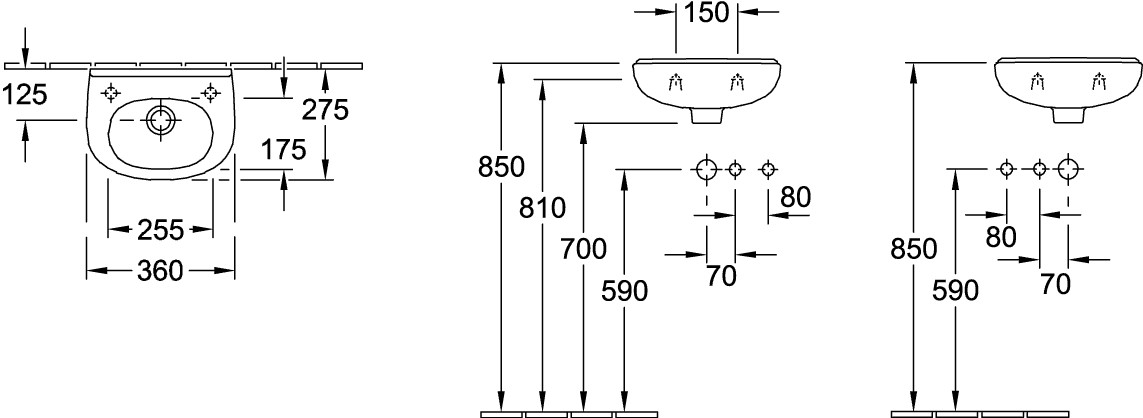 | Dimension | ohne Überlauf, seitliche Hahnlöcher vorgestochen |