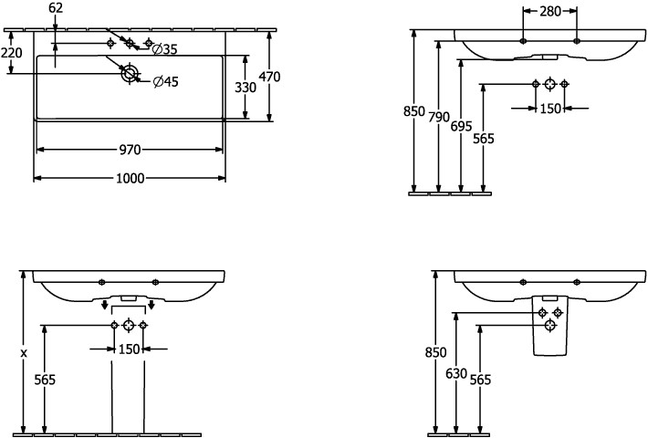 | Anzahl der Hahnlöcher je Waschplatz | 1 |