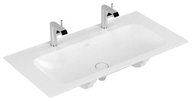 V&B Möbelwaschtisch Finion 100x50cm, 2 Hahnlöcher, ohne Überlauf, stone white C+