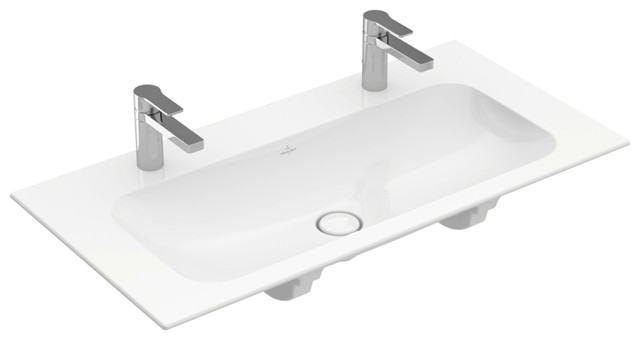 V&B Möbelwaschtisch Finion 100x50cm, 2 Hahnlöcher, ohne Überlauf, weiß C+