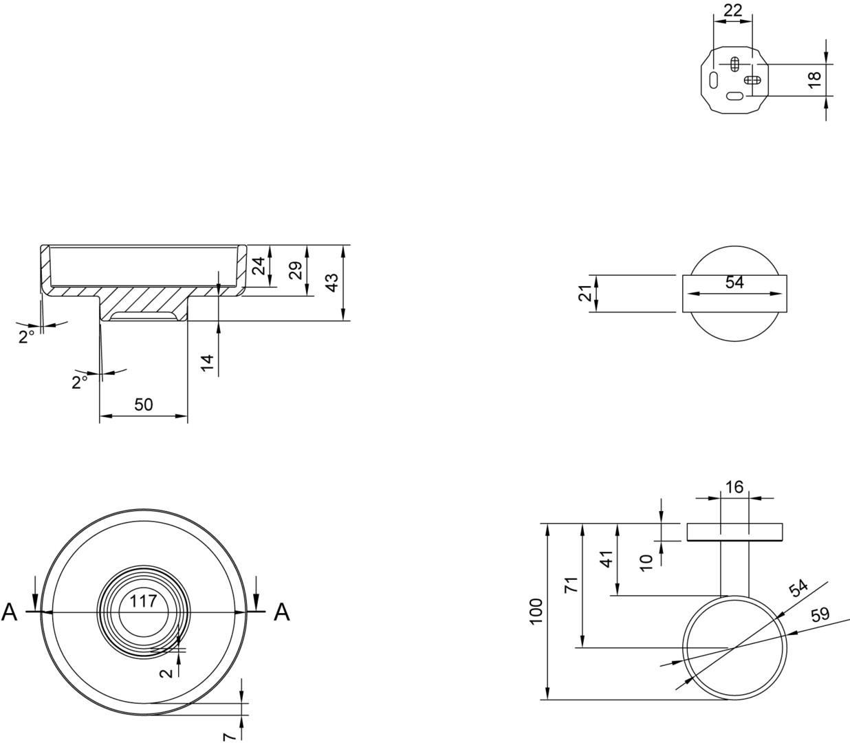 rund, Wandmontage, Material aus Messing/Zink, Seifenschale aus satiniertem Glas