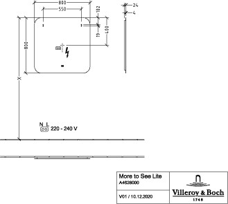 V&B Spiegel MORE TO SEE LITE 80 x 80 x 2,4 cm, 26,88 W, mit LED-Beleuchtung