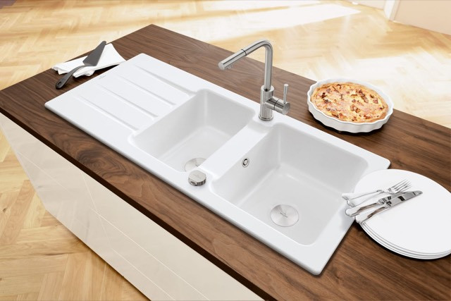 reversibel, für den aufliegenden Einbau, minimale Unterschrankbreite 80 cm, 2 Becken verschließbar