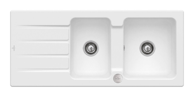 V&B Spüle Architectura 80 mit Ablaufgarnitur, Excenterbetätigung, stone white CeramicPlus