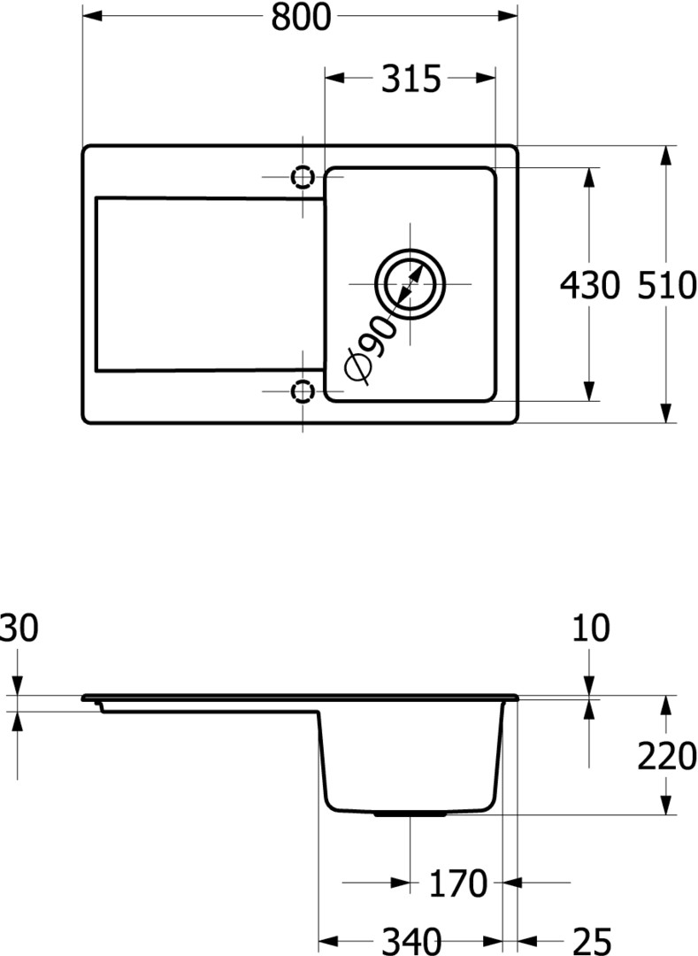 V&B Spüle Siluet 45 Spülbecken, ebony CeramicPlus