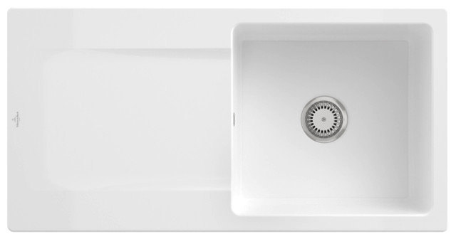 V&B Spüle Siluet 60 mit Ablaufgarnitur, rund mit Handbetätigung, weiß
