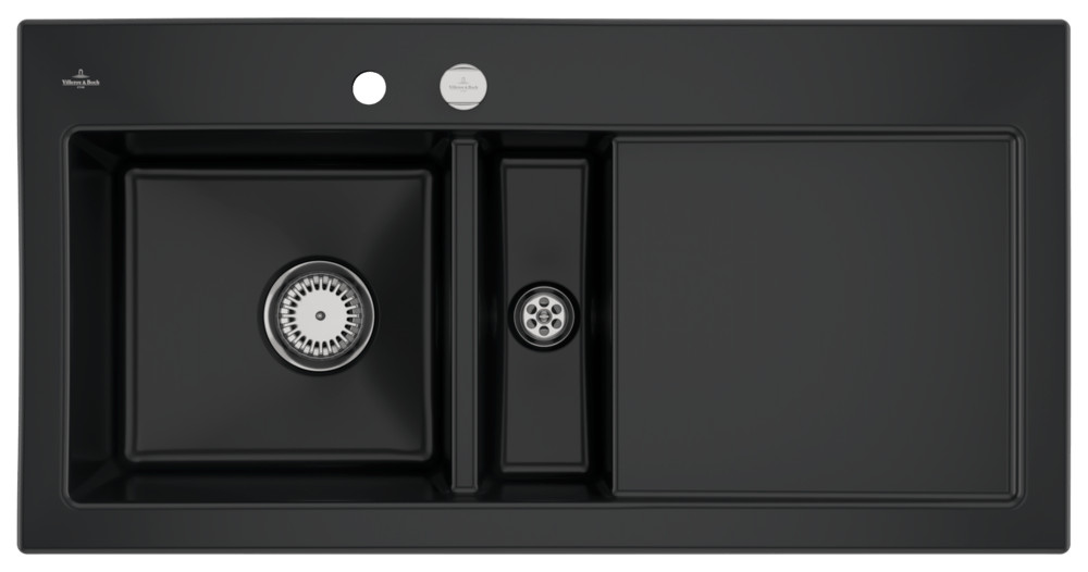 V&B Spüle Subway 60 links, mit Ablaufgarnitur, Excenterbetätigung, pure black