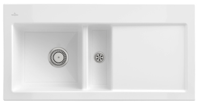 V&B Spüle Subway 60 links, mit Ablaufgarnitur, Handbetätigung, snow white CeramicPlus
