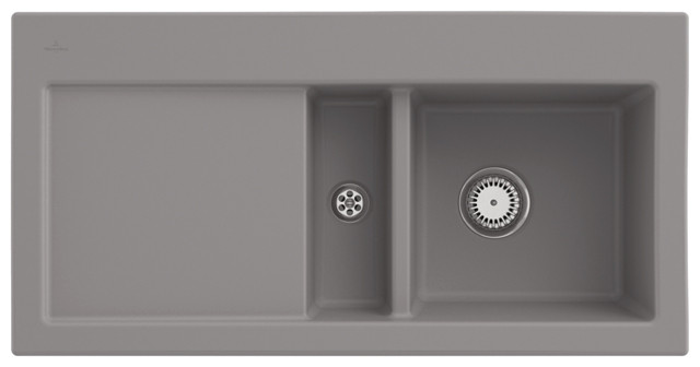 V&B Spüle Subway 60 rechts, mit Ablaufgarnitur, Handbetätigung, fossil CeramicPlus