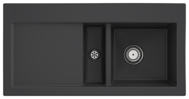 V&B Spüle Subway 60 rechts, mit Ablaufgarnitur, Handbetätigung, graphit CeramicPlus