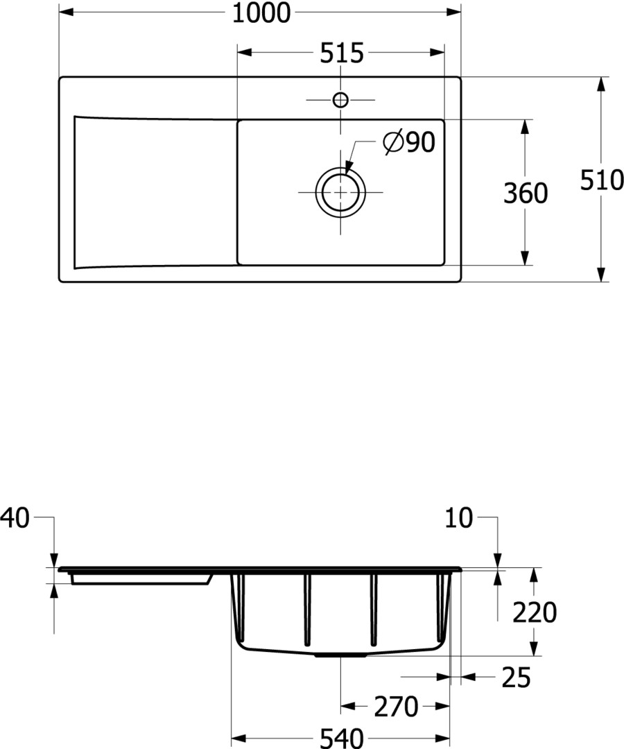 für den aufliegenden Einbau, minimale Unterschrankbreite 60 cm