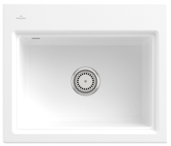 V&B Spüle Subway Style 60S Ablaufgarnitur, mit Handbetätigung und Abtropfgitter, stone white CeramicPlus