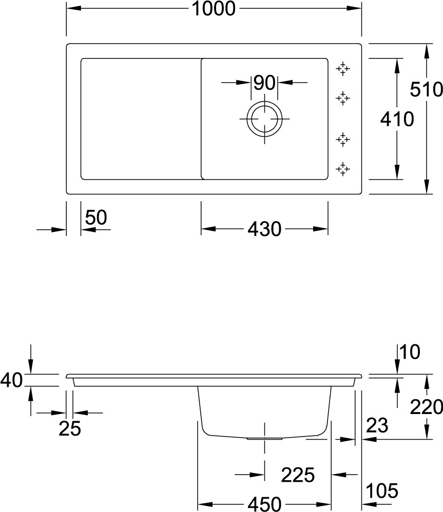 reversibel, für den aufliegenden Einbau, minimale Unterschrankbreite 60 cm