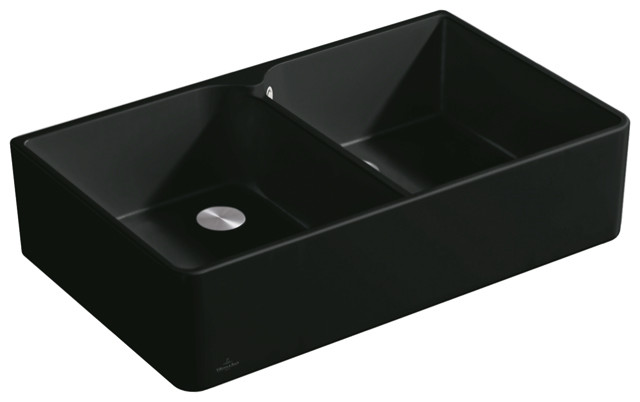 V&B Spülstein Doppelbecken 90 X Ablaufgarnitur mit Handbetätigung, Spülbecken, crema CeramicPlus