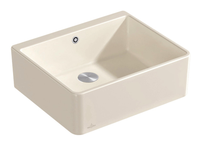 V&B Spülstein Einzelbecken 60 X mit Ablaufgarnitur, Excenterbetätigung, crema CeramicPlus