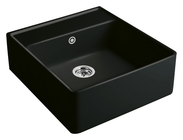 V&B Spülstein-Einzelbecken mit Ablaufgarnitur, Excenterbetätigung, ebony