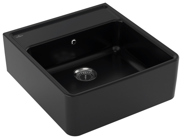 V&B Spülstein-Einzelbecken mit Ablaufgarnitur, Handbetätigung, ebony