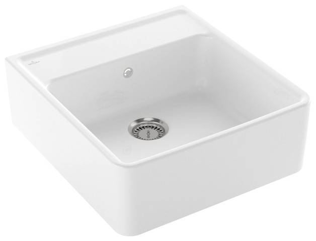 V&B Spülstein-Einzelbecken mit Ablaufgarnitur, Handbetätigung, weiß alpin CeramicPlus