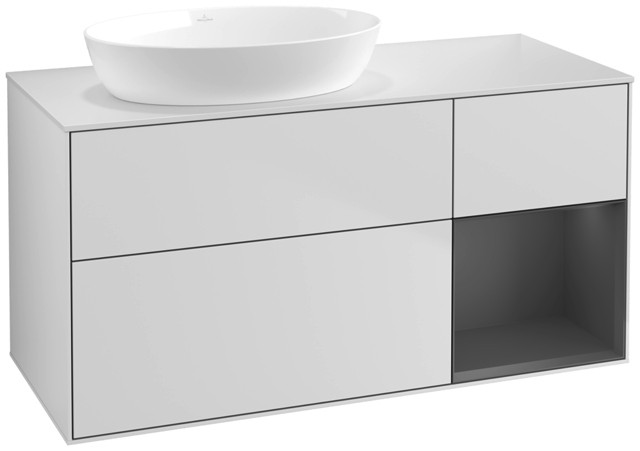 V&B Waschtisch-Unterschrank Finion 120cm, Abdeckplatte white matt, Regal Anthracite matt lacquer, White matt lacquer