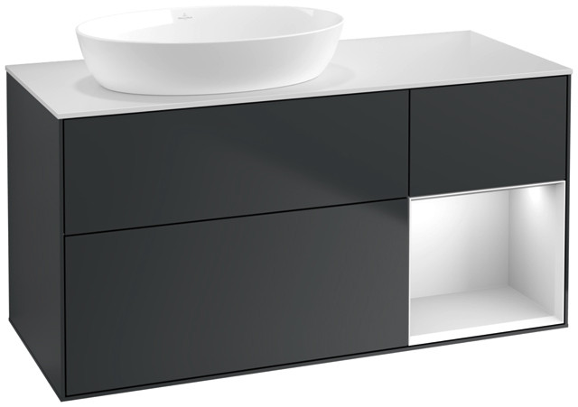 V&B Waschtisch-Unterschrank Finion 120cm, Abdeckplatte white matt, Regal White matt lacquer, Midnight Blue Matt Lacquer