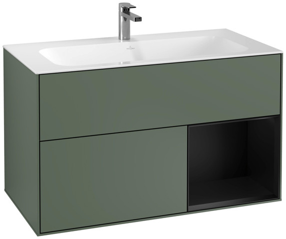 V&B Waschtisch-Unterschrank Finion Regal rechts Black matt lacquer, Olive Matt Lacquer