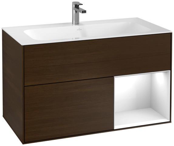 V&B Waschtisch-Unterschrank Finion Regal rechts Glossy white lacquer, Walnut veneer