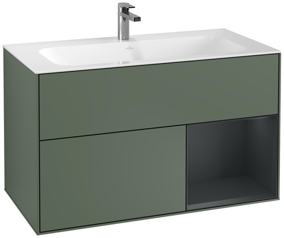 V&B Waschtisch-Unterschrank Finion Regal rechts Midnight Blue Matt Lacquer, Olive Matt Lacquer