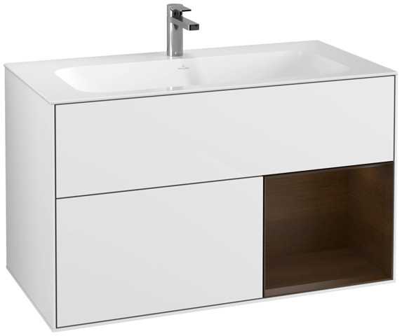 V&B Waschtisch-Unterschrank Finion Regal rechts Walnut veneer, Glossy white lacquer