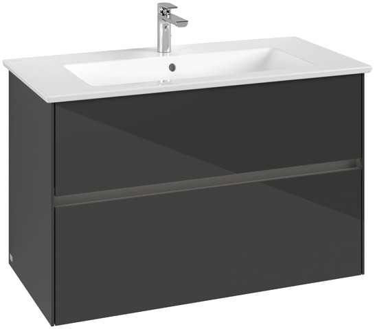 V&B Waschtischunterschrank Collaro 96,1x61x48cm, Waschbecken mittig, LED-Beleuchtung 7W, glossy grey