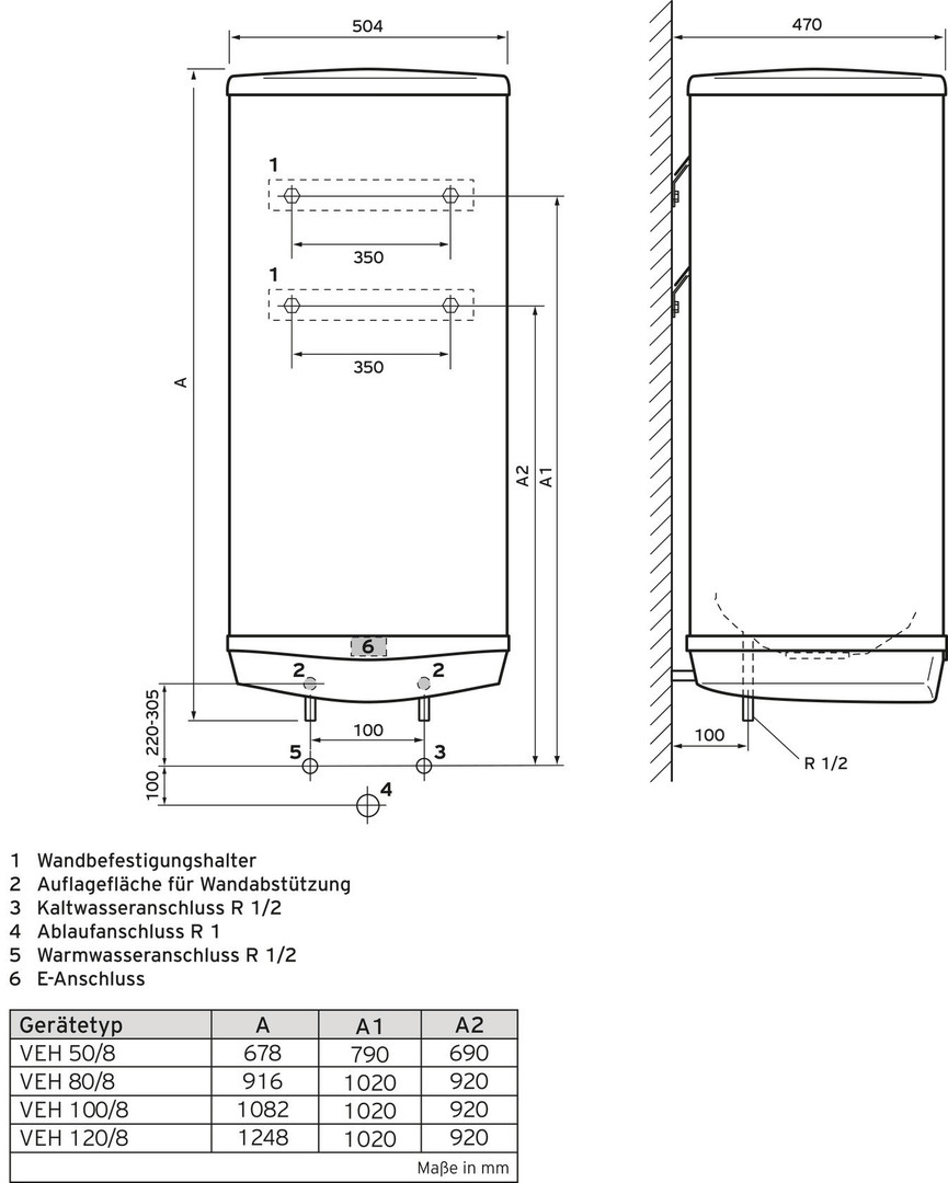 LC-Display, 4 Bedientasten, Universalheizflansch für den Einkreis-, Zweikreis- und Boilerbetrieb, Temperaturregler stufenlos einstellbar von 40-85 °C, Speicheremaillierung und Edelstahlheizkörper mit langer Lebensdauer, Strahlwasserschutz IP25 ermöglicht uneingeschränkte Installation im Schutzbereich I, mit Speicher-Emaillierung und Magnesium-Schutzanode, integrierter Kugelhahn zur Schnellentleerung, variable Geräteaufhängung, bestehend aus 1x Elektro-Warmwasserspeicher eloSTOR VEH, 1x Montageschablone, 1x Wandschiene, 2x Verbindungsrohre (nur bei 80 l), 1x Rohr für KW und WW verchromt für den Höhenausgleich 20 cm, 1x Betriebs- und Installationsanleitung, 1x Produktdatenblatt, Energieeffizienzlabel
