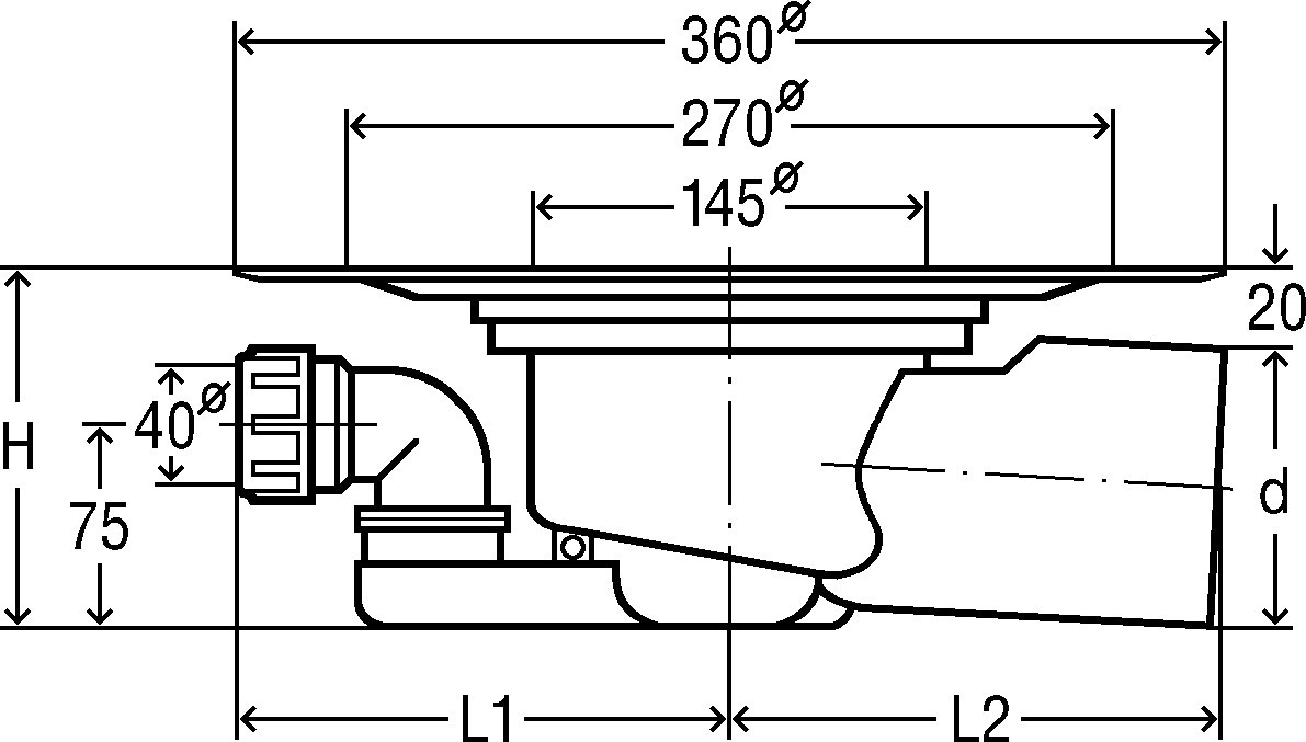 mit Schutzstopfen, mit Abdichtungsflansch, Ablaufleistung DN 70-1,1 l/s, Ablaufleistung Zulauf 2,3 l/s, Ablaufleistung DN 100-1,7 l/s, Ablaufleistung Zulauf 2,5 l/s, mit herausnehmbarem Geruchsverschluss, mit drehbarem Zulauf DN 40, güteüberwacht nach DIN EN 1253