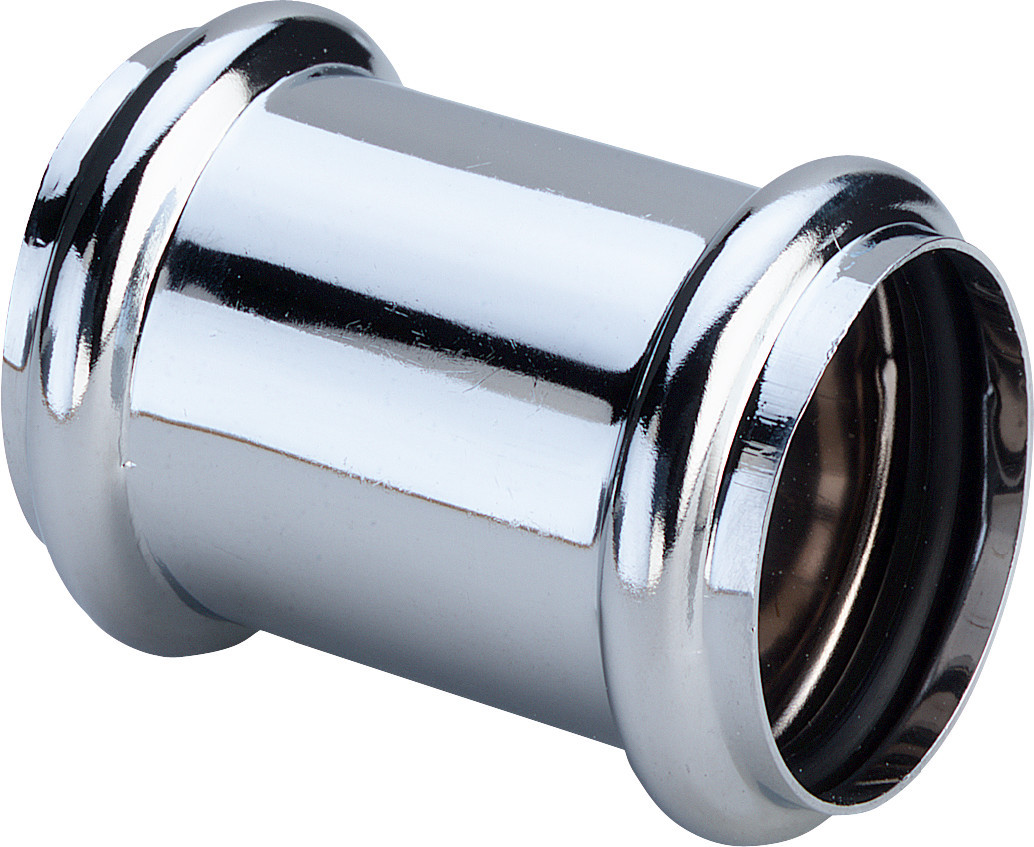 Viega Muffe 3895 DN 28, Messing verchromt, zum Verbinden von Spülrohren